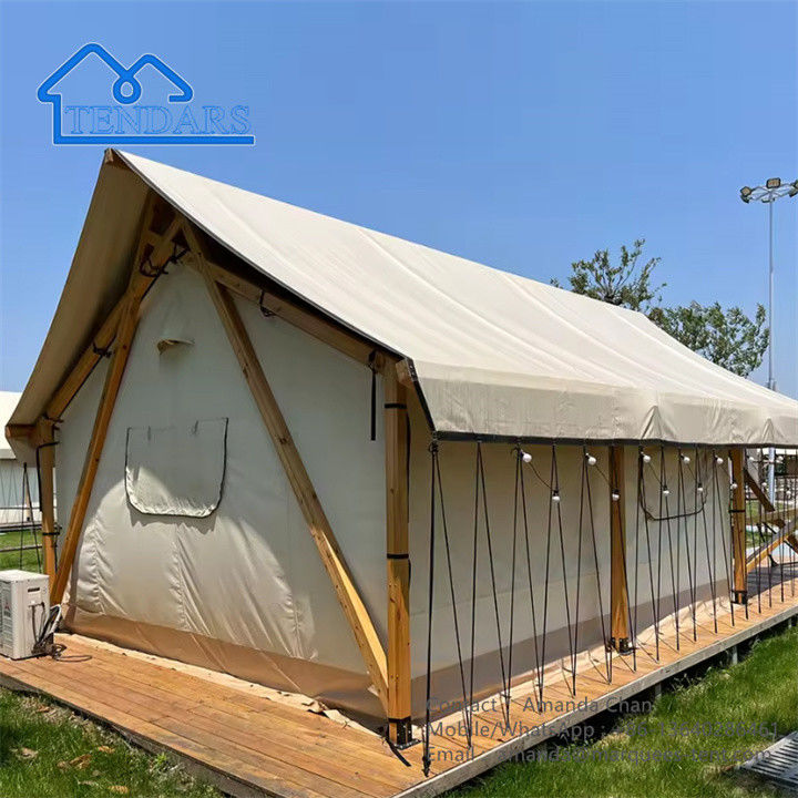 Safari tent is a popular luxury glamping tent. The wooden material bracket and the deep khaki canvas exterior, the luxury safari tent retains the appearance of the traditional camping tent. However, the former's living environment has been greatly improved. Moving the living environment in the modern house into the tent allows people in the wild but have the feeling of living in urban hotels.